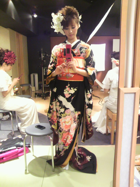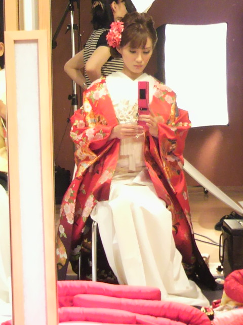 朝からガッツリ9時間くらい、着替え→撮影→着替え→撮影、の繰返しで、打ち掛け七着、引き振袖八着、合計15回お色直ししたωωω